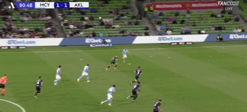第81分钟,比伊奇停球后加速突入禁区传球,梅梅蒂破门,墨尔本城2-1奥克兰FC