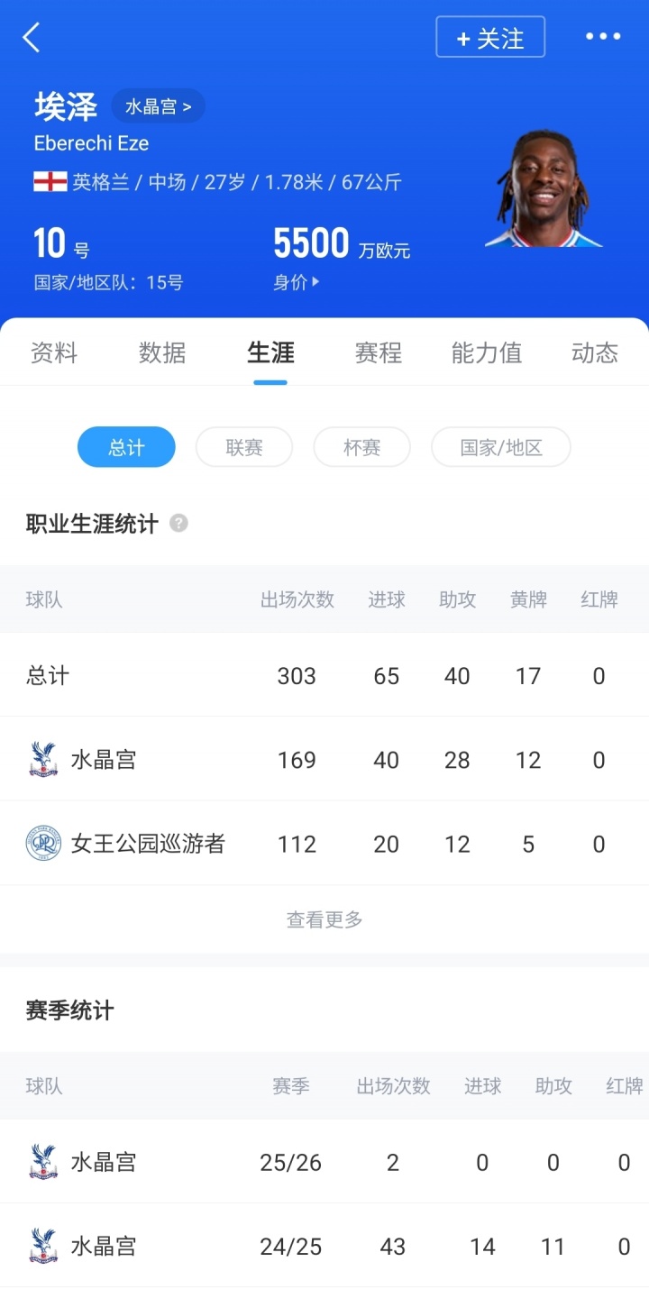罗马诺表示:“独家:热刺主席列维和水晶宫主席帕里什今天直接联系,商讨埃泽转会。